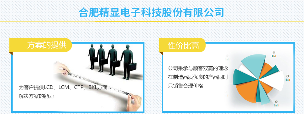 ?合肥精顯電子科技股份有限公司成立于2012年,由液晶行業(yè)知名企業(yè)廈門精顯電子有限公司投資建設(shè),是一家研發(fā)、生產(chǎn)、銷售高品質(zhì)液晶屏(LCD)、液晶顯示模塊(LCM)、背光(LED)、電容式觸摸屏(CTP)等節(jié)能環(huán)保產(chǎn)品并能為顧客提供解決方案的高新科技企業(yè)。 ?公司占地55畝,擁有建筑面積超過20000平米和潔凈廠房5400平米。 ?公司擁有一個(gè)超過15年以上LCD行業(yè)運(yùn)營制造經(jīng)驗(yàn)的團(tuán)隊(duì)。 ?公司獲得研發(fā)專利20余項(xiàng)。 ?公司通過C-TPAT認(rèn)證,ISO9001:2008認(rèn)證,產(chǎn)品通過了ROHS、REACH。 ?我們產(chǎn)品廣泛應(yīng)用于智能儀表(水表,電表,氣表)、家電、儀器儀表、計(jì)量器械、文教 器具、UPS電源、智能手機(jī)機(jī)、平板電腦等電子產(chǎn)品的顯示和控制。目前我們已樹立了良好的品牌形象,并與眾多公司(如GE, Ja...更多>